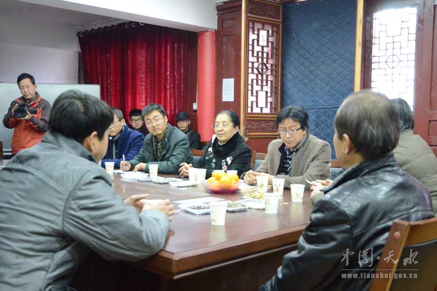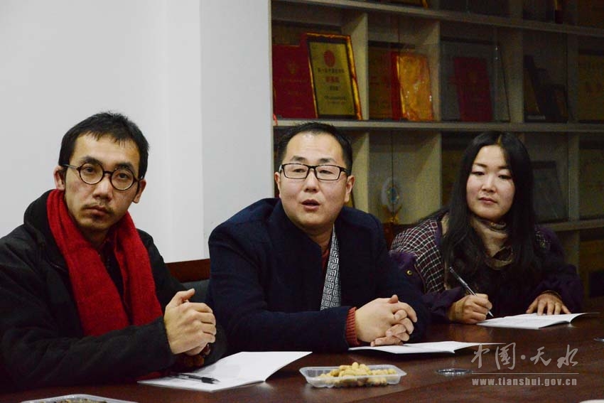 天水画院院长靳永红,天水市文化馆馆长李靖,天水师范学院王骁勇、康小花,祁国荣、秦州区美协副主席高泉生,市著名女诗人李蕴珠,民间书法家张玉玺,清水县作协主席姚来春,青年画家何岩,海霞古筝艺术学校杨海霞,兰州工商学院天水授课点杨洁等莅临展室并在研讨会上发言。