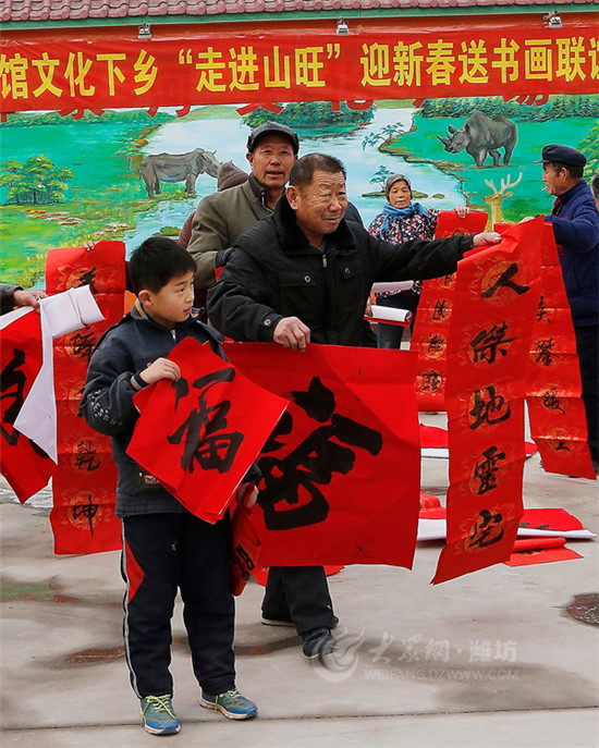 据了解,本次活动以送书画、送春联的形式,弘扬社会主义核心价值观和中华民族优秀传统文化,给全市人民送上节日的祝福。“迎新春送书画”活动是潍坊市文化馆冬春文化惠民活动之一,已连续举办多年,深受百姓欢迎。