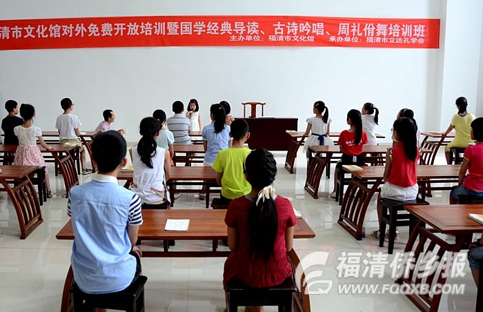 为加强青少年暑期教育,市文化馆免费开放场馆,并开设国学经典导读、古诗吟唱、周礼佾舞培训班等,吸引了众多市民参与。郭成辉 林秋明 摄
