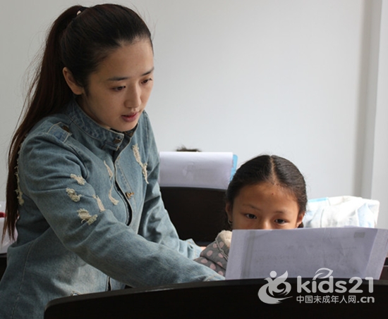 文化馆老师手把手地钢琴指导