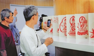 10月13日上午,2015莲花街道剪纸“十百千万”系列展演吴自力剪纸艺术展在福田文化馆开幕,吴自力创作的百余幅精品剪纸亮相,展览持续到23日。明日下午两点半,吴自力将在展会现场进行剪纸沙龙讲座。此次《深圳八景》和《观世音百像》系列作品是首次展出。图为吴自力历时两年创作的《观世音百像》系列作品。(刘丹青 文/图)