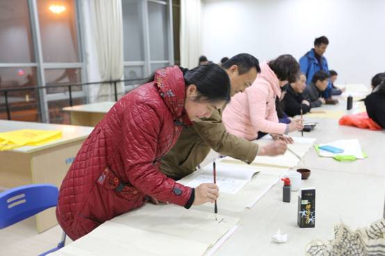宿迁市文化馆第四期免费培训班已于本周全面开课,周二晚成人戏曲班、成人书法班、成人钢琴班以及广场舞班的教室座无虚席。书法教室墨香扑鼻,学员们一边听老师的指导一边临摹字帖,他们有的是夫妻利用业余时间来充电,有的是志同道合的同事或朋友,有的是有一定基础的书法爱好者;其中有一对夫妻利用业余时间带着孩子一起来感受文化的浸润,一家三口其乐融融。文化馆免费培训班的课堂已不仅是市民朋友学习艺术知识的课堂,更成长为了透视和谐大宿迁、幸福小家庭的一个小窗口。(文化馆:陈雪)