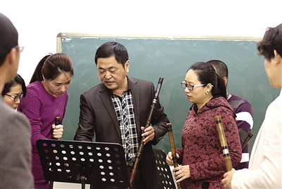 (翁卿仑 摄) 昨天晚上,在市文化馆二楼的一间教室里,器乐老师叶荔正在给学员们上课。据了解,2016年温州市文化馆春季公益免费培训班自3月中旬陆续开学,面向我市爱好文化艺术的少儿和成人,目前共有54个班级1000多名学员,培训科目包括美术、书法、摄影、声乐、舞蹈、戏曲、器乐、主持等,将为期三个多月。