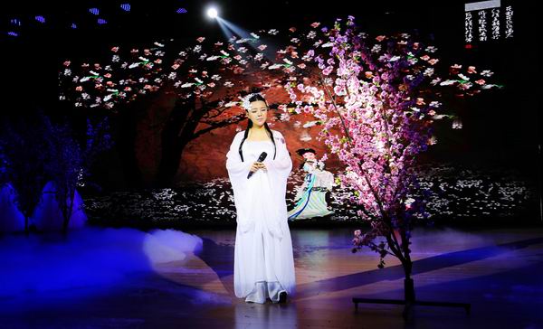 晚会在曲调悠扬的合唱与朗诵《送别》中徐徐展开,配乐诗朗诵《月光诗篇》在古琴灯光的渲染下温雅婉约;女声独唱《葬花吟》凄婉动人、配乐诗朗诵《神女峰》美轮美奂;此外《我的北方与南方》《你问我宿迁有什么好》等作品充分表达了对故土的深厚感情,晚会全体人员群诵经典诗词作品将整场晚会推向高潮。朗诵者们以饱满的激情和娴熟的朗诵技巧,将诗人的文字,演绎成真切动人的画面,给观众带来了美妙的视听感受,赢得现场观众热烈的掌声。(市文化馆:冯超)